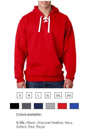 This fashion fleece piece puts spotlight on the contrasting white laces. Key Features: *80% ring-spun cotton/20% polyester *10 oz. *split placket with 6 sewn eyelets *jersey-lined 3-piece hood *thick and flat white drawcord with grey ticking *spandex blend rib-knit waistband *cuffs